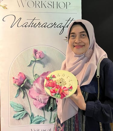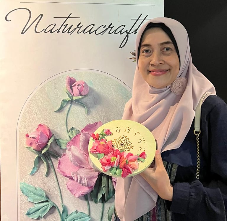 Saya adalah ibu rumah tangga dengan dua anak. Di tengah waktu luang di rumah, saya mulai mengeksplorasi minat berkarya. Perjalanan ini membawa saya menemukan seni yang unik dan belum banyak dikenal, yaitu Sculpture Painting. Saya mengenal seni ini pertama kali melalui akun sosial media Naturacraft, dan sejak saat itu saya semakin tertarik untuk belajar dan mendalaminya.