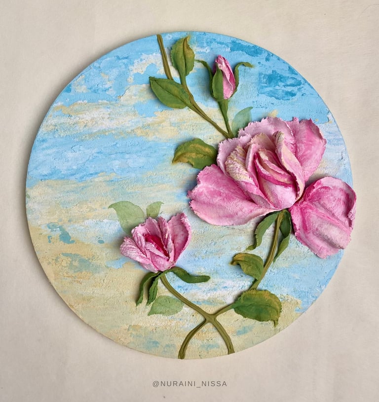 3D flower painting using decorative plaster & knive palettes. Guided by Certified Teacher Nissa Nuraini.