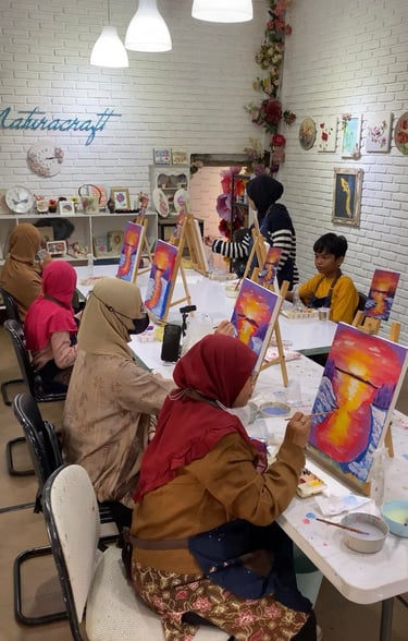 Naturacraft terletak di Cimahi, menyediakan ruang belajar seni dan kerajinan bagi semua usia.