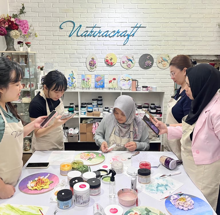 Owner Naturacraft sekaligus juga Certified Teacher of Sculpture Painting. Nissa sudah berpengalaman mengajar ratusan murid, berkolaborasi langsung dengan Evgenia, dan membangun bisnis seni.
