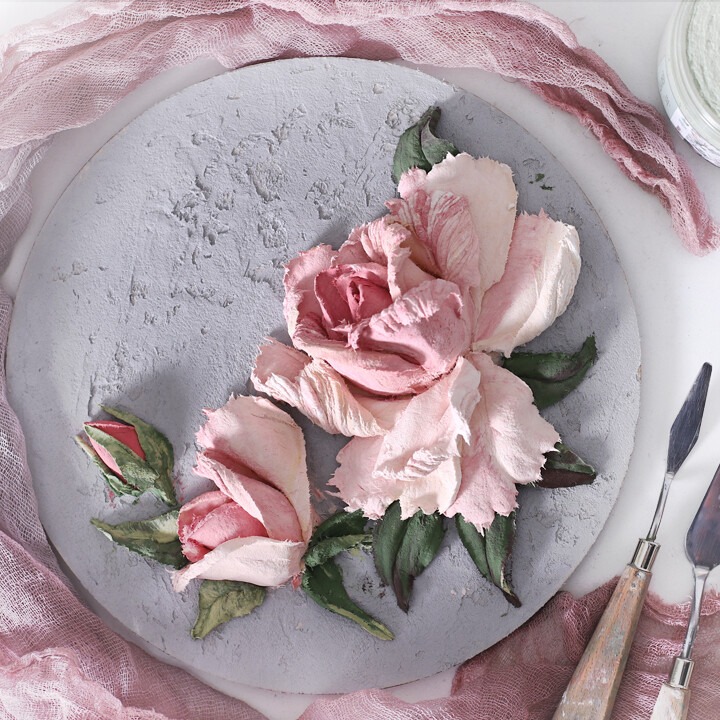 Teknik seni melukis tiga dimensi berbahan plaster dekoratif dan alat pisau palet